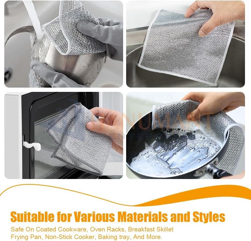4 pcs Magic Cleaning Cloth Double Layer, Multipurpose Wire Dish Washing Rags for Wet and Dry, Reusable