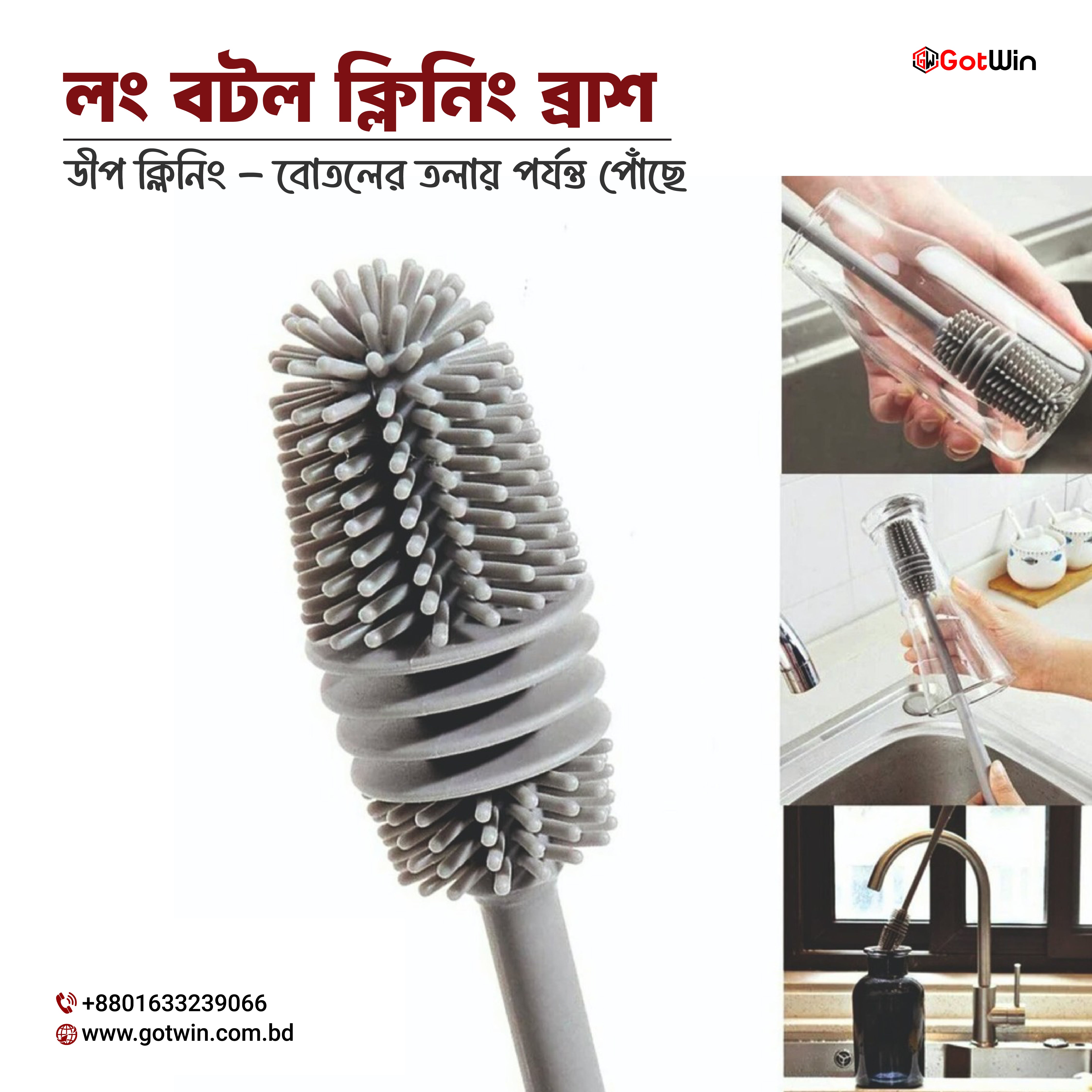 Hang-able Long Handle Silicone Glasses Cup Brush Long Handle Brush Soft Bristles for Cleaning Bottle and Jar