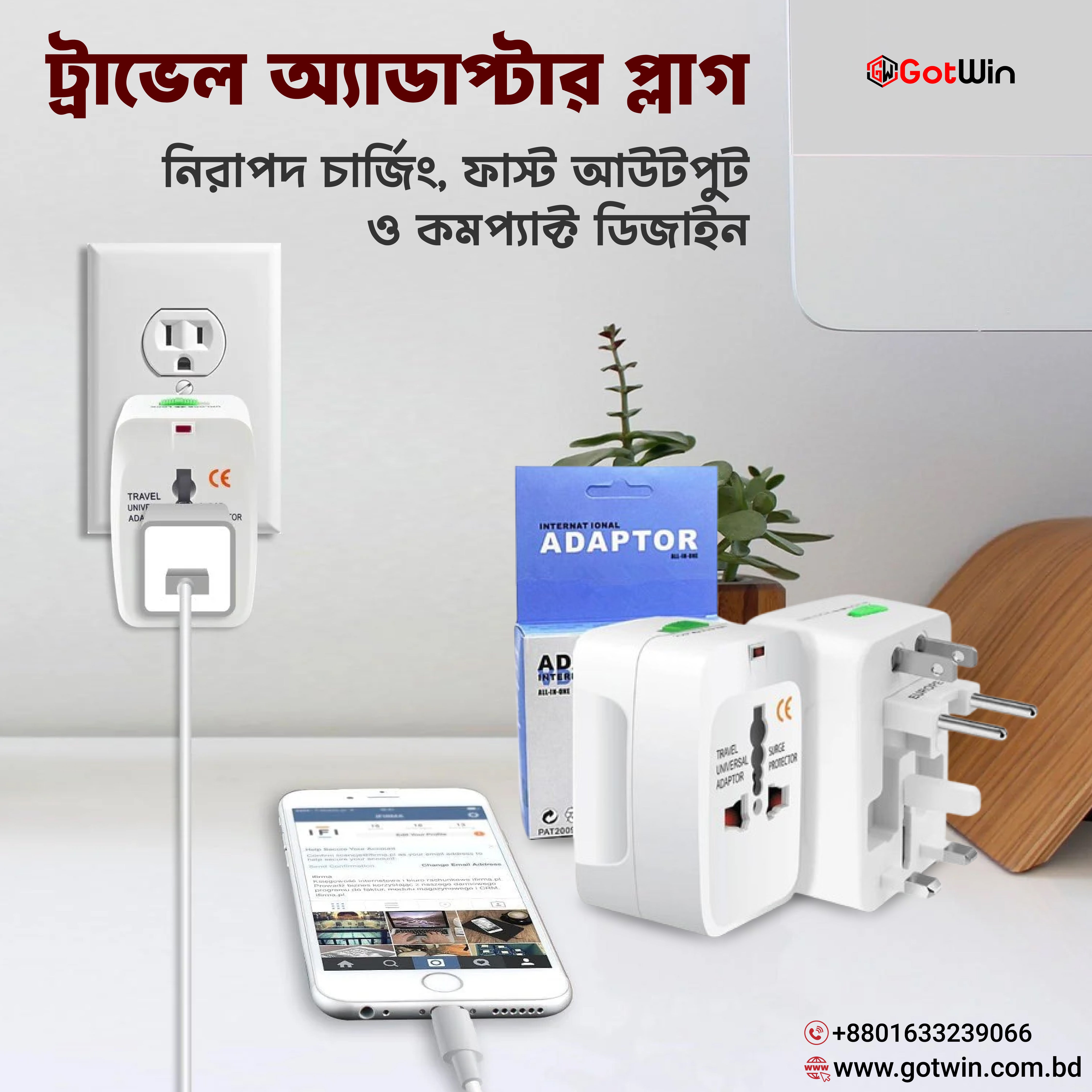 Universal All-In-One (US UK EU AU) World Wide International Travel Adapter Plug