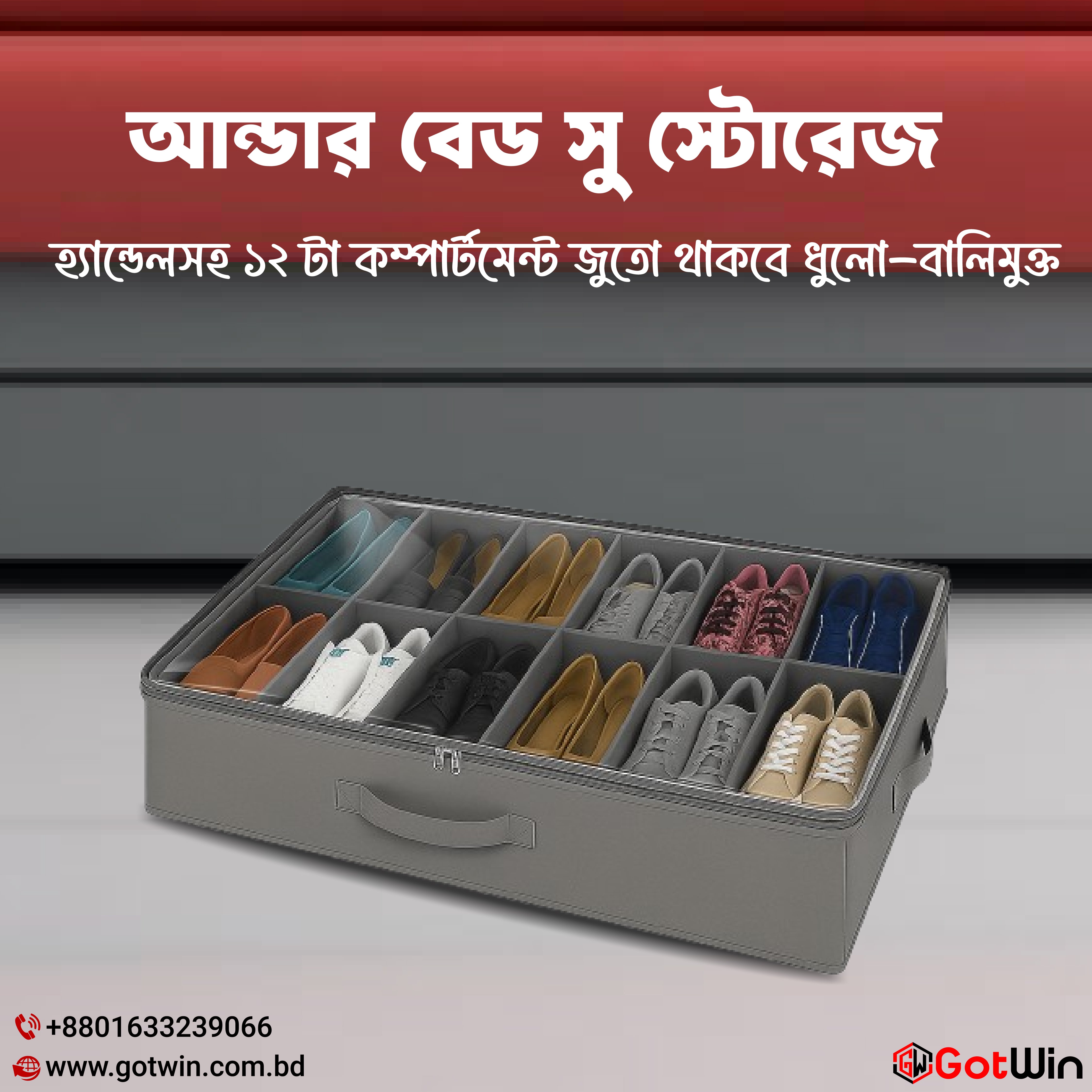 Maximize your space and keep your footwear neatly organized with our Underbed Shoe Storage Organizer. Crafted from high-quality 130 GSM nonwoven ash-colored fabric, this storage solution is both breathable and durable, making it ideal for long-term use.